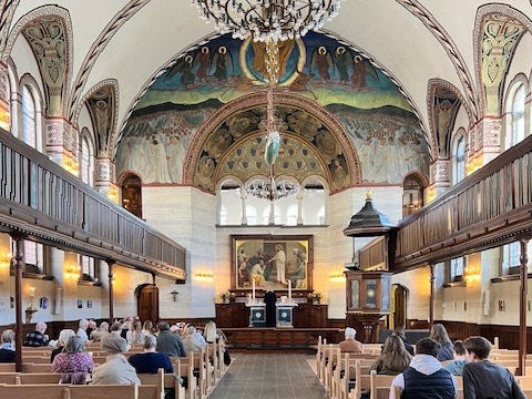 Hvordan lærer man rim og remser, hvordan lærer man mærkelige ord og formuleringer? Man kan fx lege dem ind. Da vi i 2021 skulle planlægge Sions Kirkes 125 års jubilæum fik vi derfor den ide, at vi kunne lægge trædesten i kirkens have med ordene i fadervor. En trædesten til hvert ord i fadervor, 66 sten i alt. Konfirmander, skolebørn, spaghettigudstjeneste-børn, vores lokale børnehaver og hvem der ellers kommer forbi, kan gå, hinke eller hoppe et fadervor, og på den måde lære fadervor, så de ikke kun husker den lille tabel. Havearkitekten Peter Juhl fra Opland har designet fadervor.
